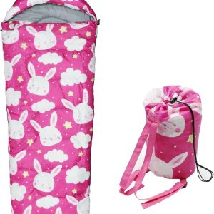 SUITABLE:The sleeping bag can be used for 3 Seasons.SIZE:90.5″L x 31.5″W Suggenal extreme temperature: 41 ℉ -77 ℉.Applicable in a variety of scenarios,such as Travel camping pajamas party,It’s very suitable for you to travel with your children.Half-circle hood with adjustable drawstring,which can keep you warm and prevent your humidity